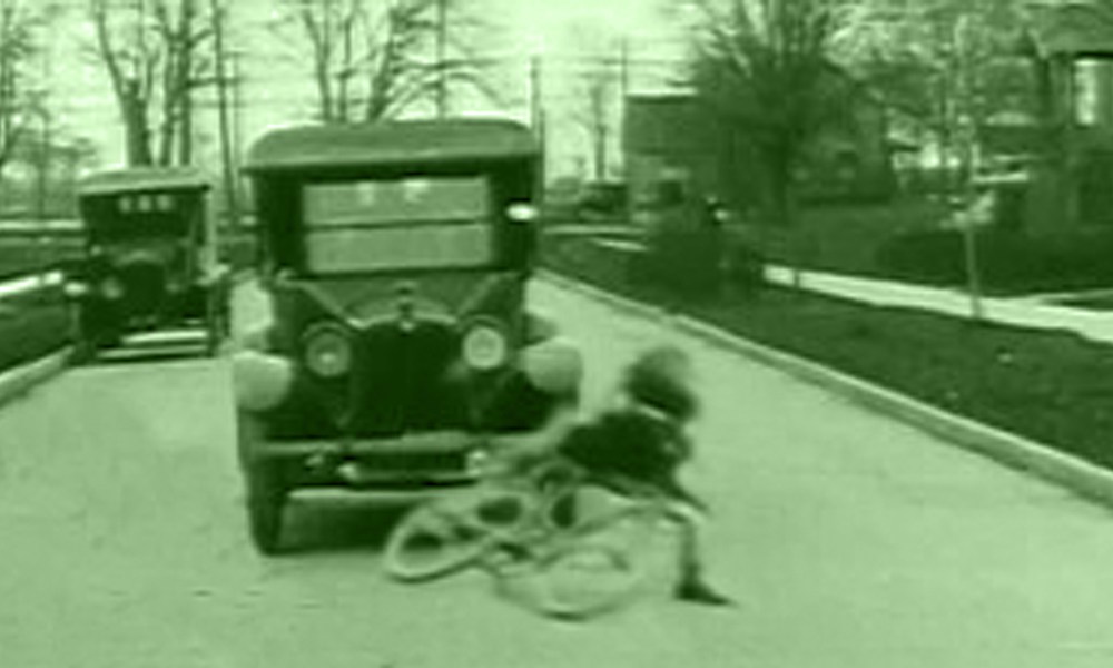 Shortly after noon on August 10, a bicycle ridden by Keith Alwyn Atkins, 15, messenger, of Healy-st., Gosford, crashed into the side of a taxi cab, driven by Herbert Cowper Ranyard, at the intersection of York and Mason Parades’ Gosford.